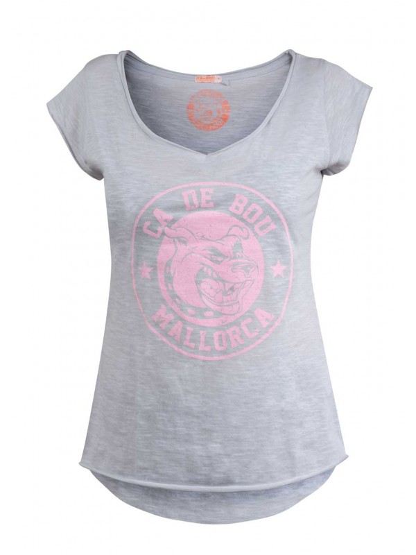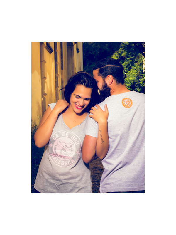 Samarreta 100% de cotó tipus "Slub yarn" amb impressió frontal de disseny exclusiu i logotip de Ca de Bou a la part posterior.
